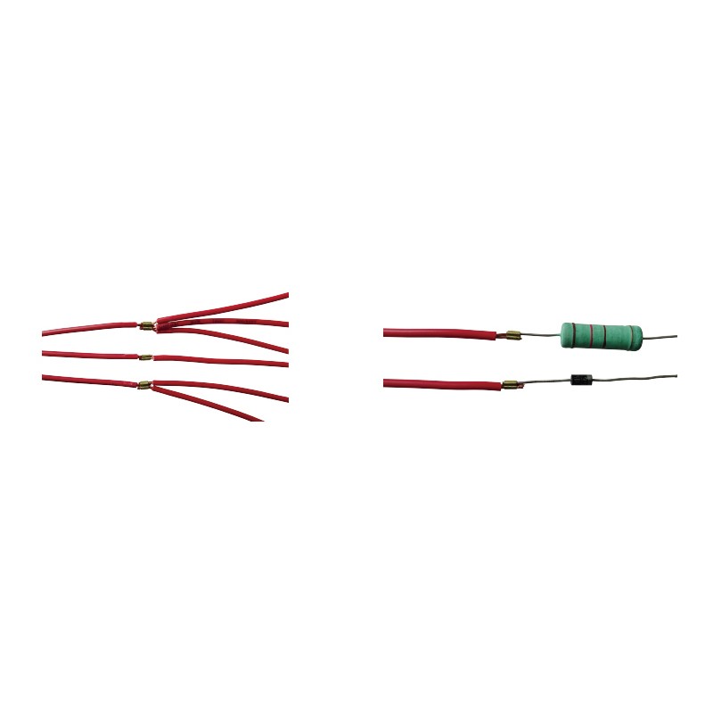 氖灯与电阻之连接,线材与线材之连接,滑动开关与导线之连接,高温发热体之连接,热敏元体(如磁簧开关、恒温保险丝)之连接